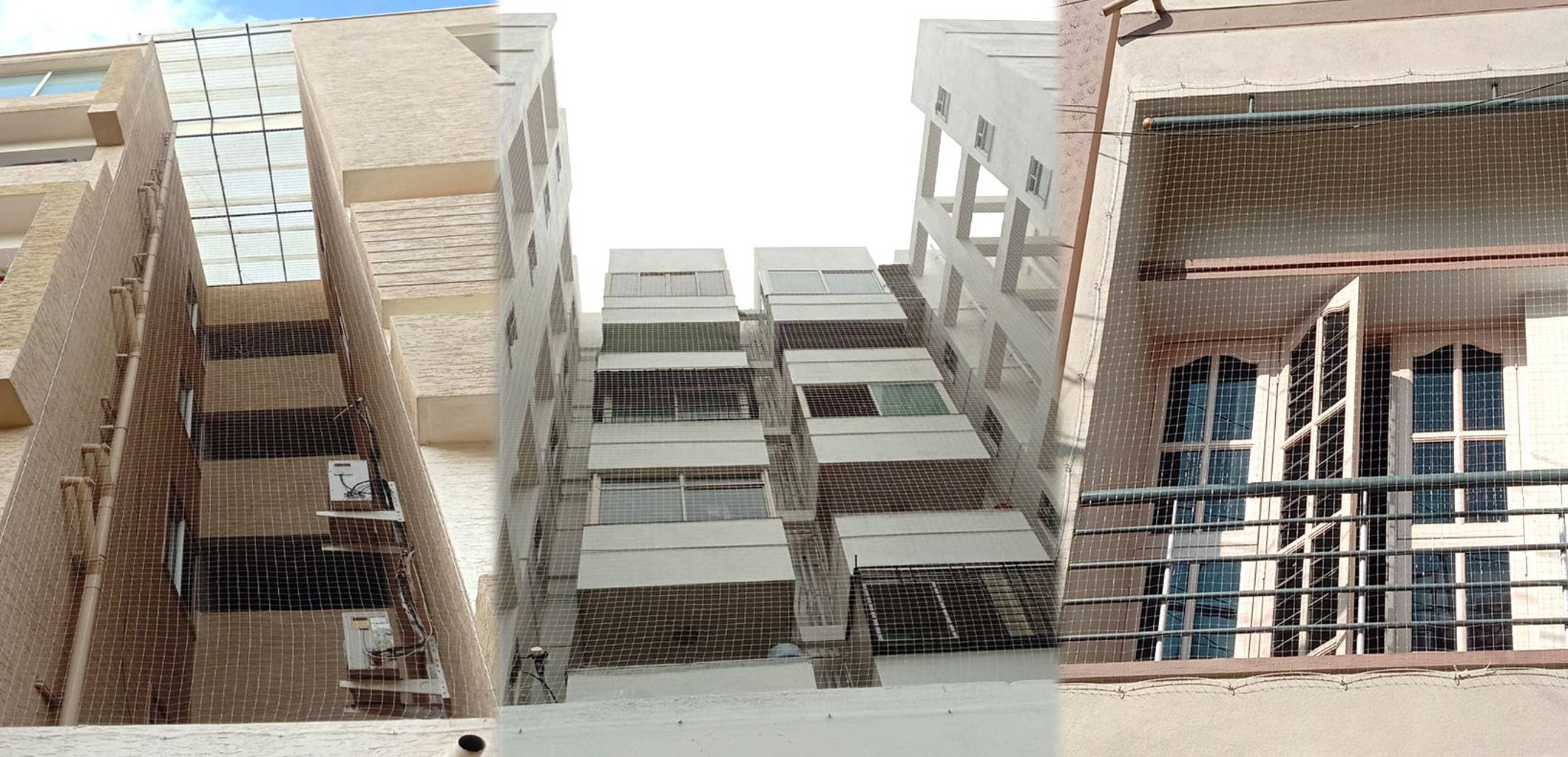 We are the skilled experts in fixing Safety nets for Balcony Safety Nets, Pigeon Safety Nets, Anti Bird Nets, Pigeon Nets for Balconies, Cricket Net Practice, Children Safety Nets, Construction Safety Nets, Duct Area Safety Nets, Building Safety Nets, Industrial Safety Nets, Swimming Pool Safety Nets Stairway Safety nets, Monkey Safety Nets, Terrace Top Nets, Glass Safety Nets, Car Parking Safety Nets, Coconut Tree Nets, All types of Safety Nets, HDPE Nets – Nylon Nets.
